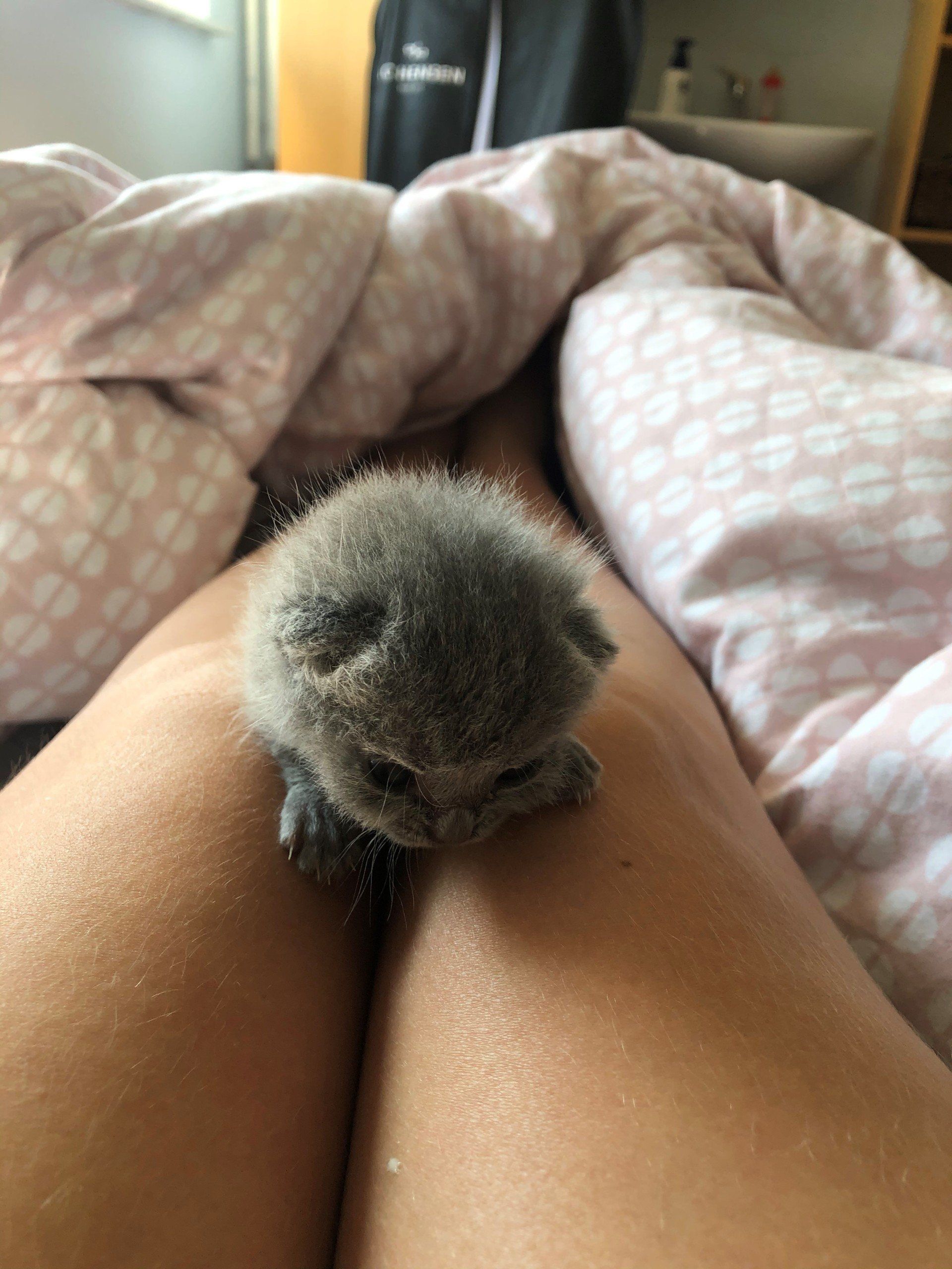 Met onze sole survivor gaat het heel goed gelukkig. Zoals jullie in de vorige blog konden lezen, werden afgelopen week de katjes één voor één minder. Van de vijf overlevenden gingen twee lilac en één grijs katertje dood. Op een gegeven moment waren er nog twee over: de grijze kater die als eerste werd geboren, en een lilac kater die erg goed groeide. We hadden goede hoop! De grijze was stabiel en de lilac groeide zo snel, daarmee kon niks misgaan. Ook maakten ze genoeg geluid: miauwen konden ze als de beste! ..Totdat het op een gegeven moment misging. Op woensdagavond 3 juni werd het lilac katertje steeds minder beweeglijk, hij werd steeds slapper en hij miauwde niet echt meer. Misse boel, dachten we meteen. We zijn met spoed naar het dierenziekenhuis in Oldenzaal gereden. Om 22:00 uur waren we daar. De dierenarts zei meteen dat het er niet goed uitzag.. De twee kittens kregen een antibioticaspuitje tegen een eventuele longontsteking, wat morfine tegen de (vermoedelijke) buikpijn en water met druivensuiker. De dierenarts veronderstelde dat ze zouden overleven als ze na 48 uur nog in leven zouden zijn. Toen we thuiskwamen werd het met het lilac katertje niet beter. Hij ademde steeds moeizamer. Bij de nachtvoeding zagen we dat hij was overleden. Hierbij een foto van het dappere kereltje en van de broertjes samen.